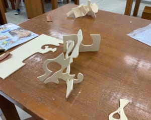 現在、5年生では電動の糸鋸を使い立体作品を制作しています。