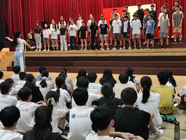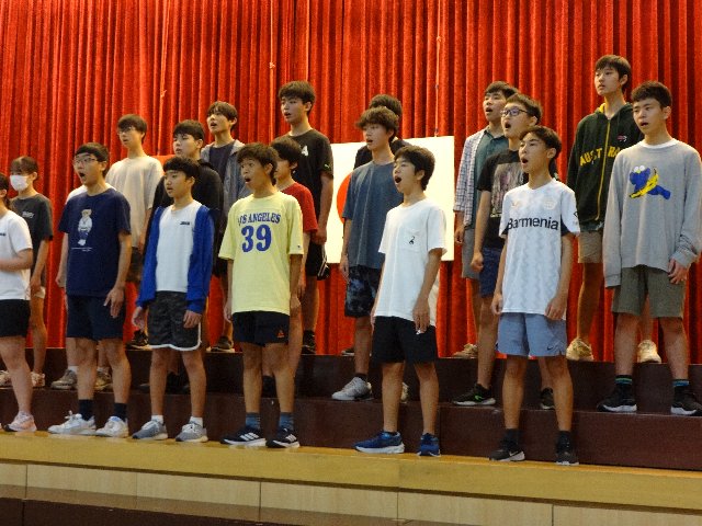ホーチミンミュージックフェスティバルに向け、3年生の合唱練習に力が入っています。先週から練習場所をフェスティバル会場となる第二体育館に移し、合唱だけでなくステージへの移動やひな壇の上り下りを徹底して練習しています。