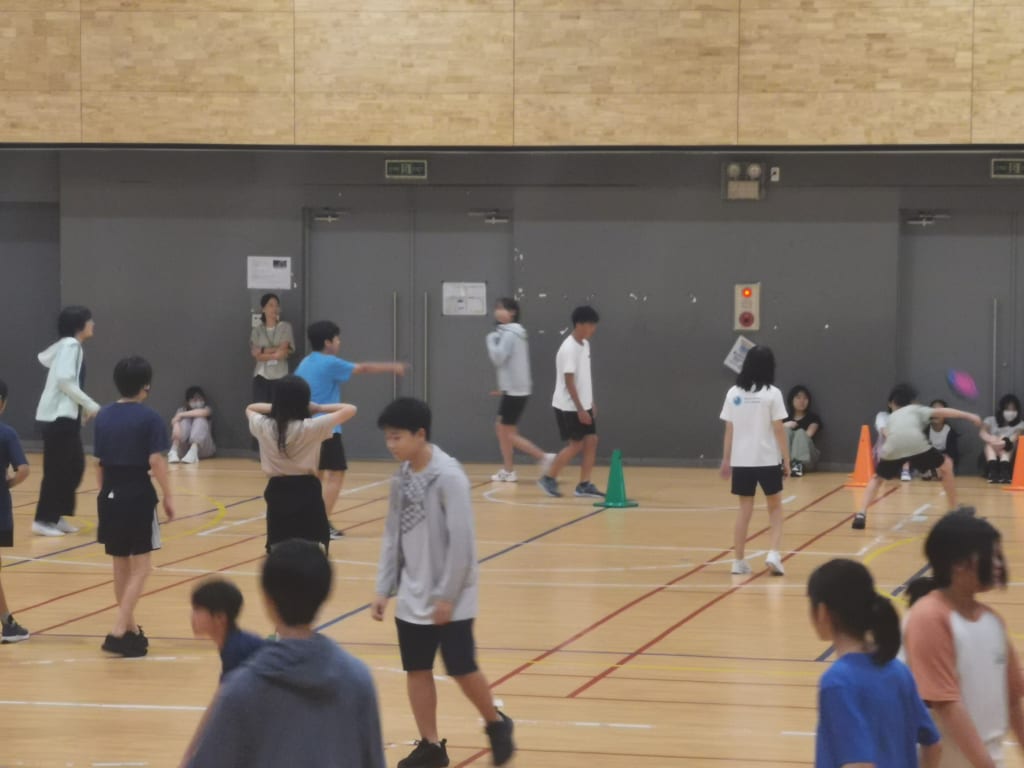 レクでは学年を超えてチームを作り、ドッジビーを楽しみました。