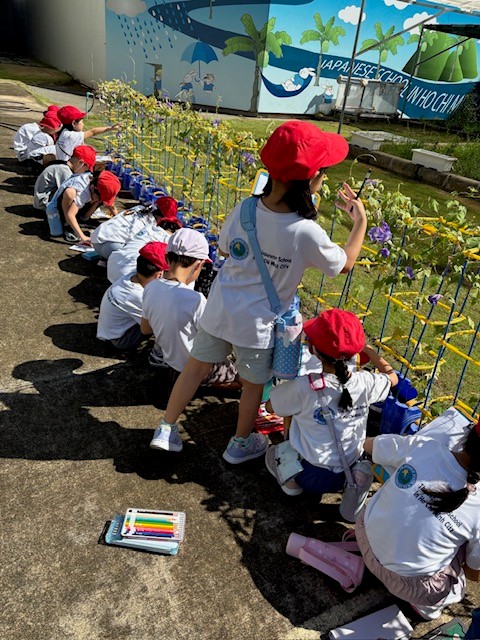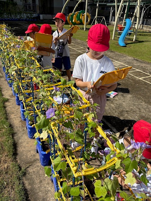 生活科で、5月から毎日水やりをして育てたあさがおが咲きました。 種を収穫するのが楽しみです。
