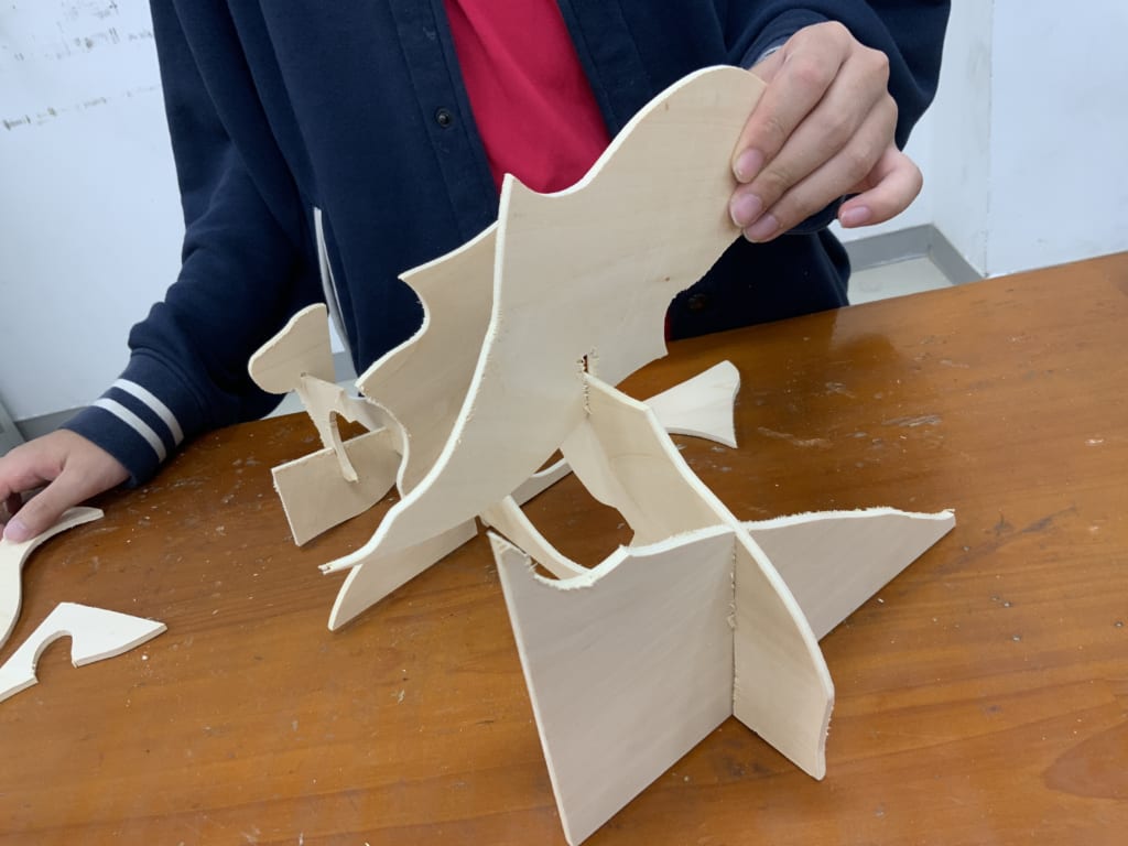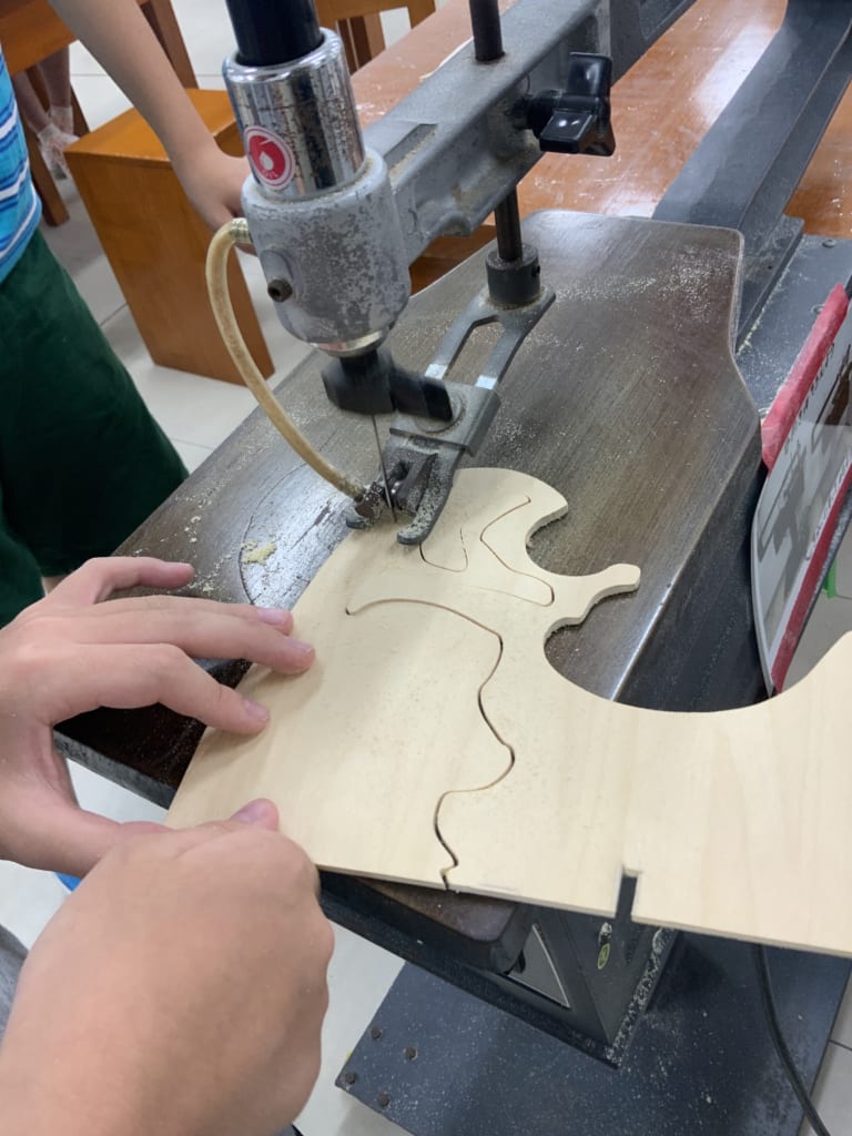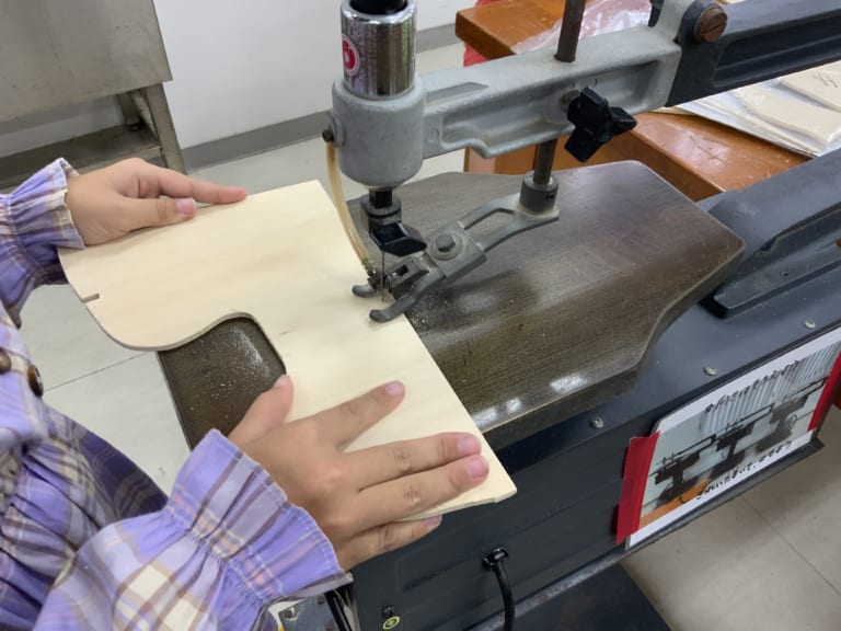 現在、5年生では電動の糸鋸を使い立体作品を制作しています。
