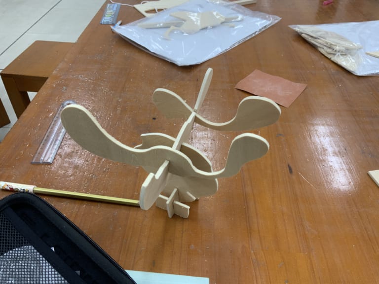 新校舎建設中の日本人学校では、工作室でも9月から工事のような音が響いています。