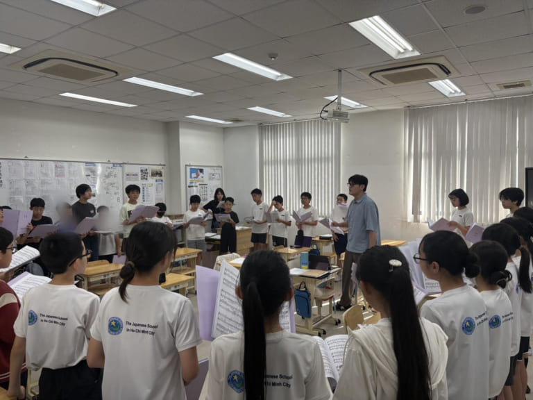 6年生のホーチミンミュージックフェスティバルのスローガンは「天歌夢奏(てんかむそう)~気持ちを一つに、響けこの思い~」です。