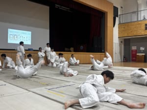中1の体育の授業では、「武道-柔道-」に取り組んでいます。
